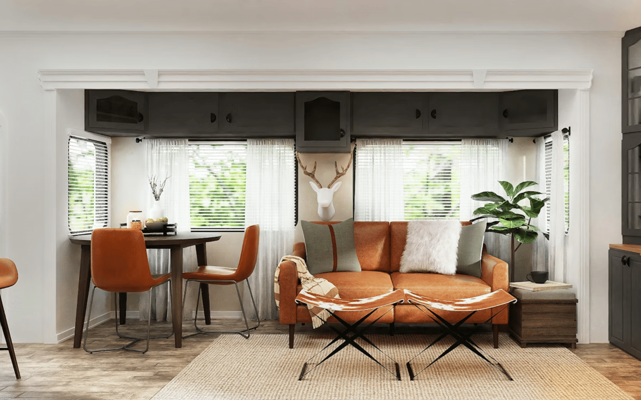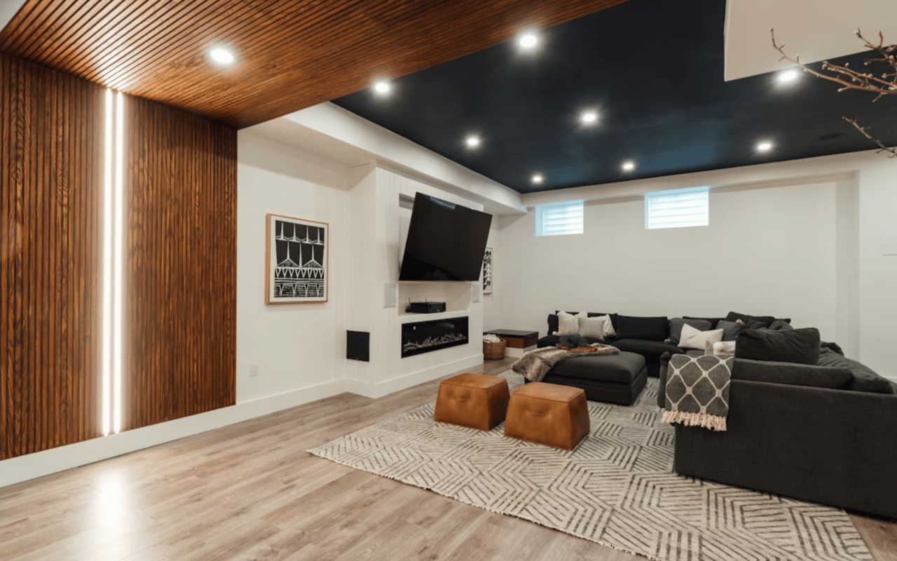 Symmetry remains a core principle in Modern Classic design. For example, living rooms in Pierpont Bay bungalows might be arranged around a central fireplace, with matching armchairs or built-in shelving to create visual harmony. Layered textures, such as velvet upholstery, natural wood finishes, and woven textiles, add warmth and richness without overwhelming the space.